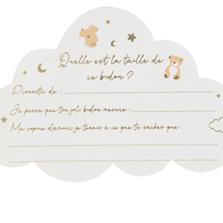 Ce lot est composé de 10 belles cartes en forme de nuage de la collection "ourson" et d'un ruban mètre d'une longueur de 200 cm.