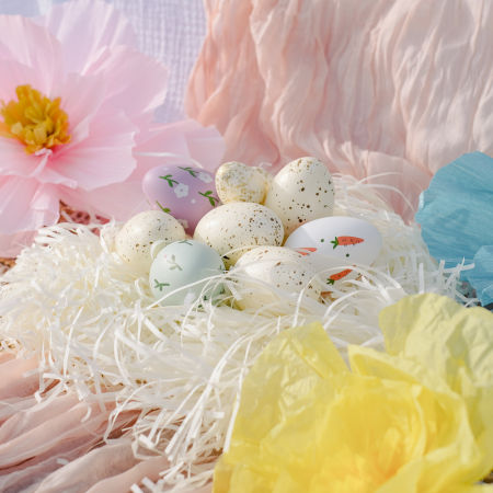 On l'aime particulièrement à Pâques où il a toute sa place dans des paniers ou des compositions avec des petits chocolats dessus.