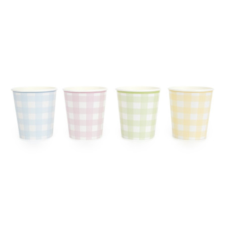 Apportez une touche de fraîcheur et de douceur à votre table de fête avec ces gobelets en carton Pastel Vichy. Leur motif vichy délicat et leurs couleurs pastel assorties – rose, bleu, vert et jaune – apportent une atmosphère conviviale et tendance.