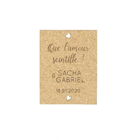N'oubliez pas de sauvegarder votre personnalisation pour pouvoir l'ajouter au panierPensez au moindre détail avec ces jolies étiquettes pour étincelles personnalisables en liège.