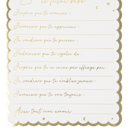 Vous pouvez indiquer sur ces jolis cartes toutes les belles choses que vous souhaitez pour bébé <3