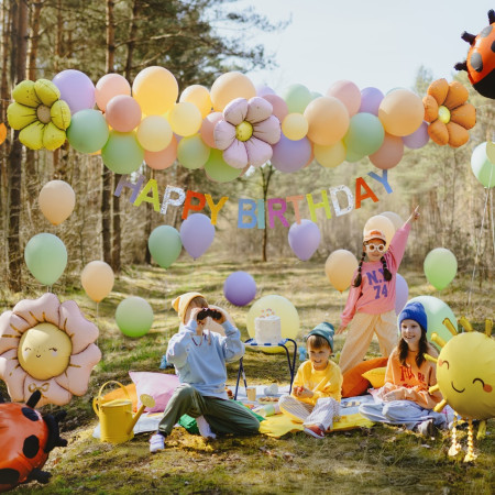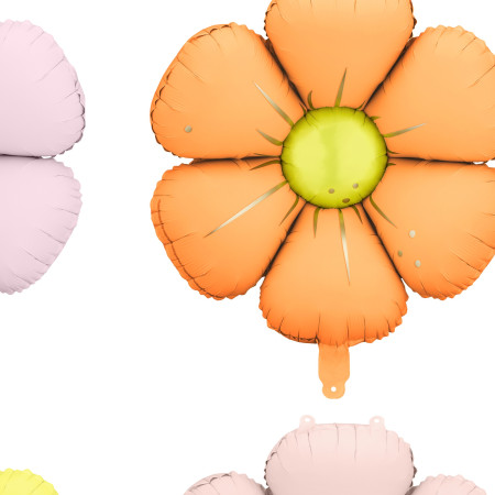Apportez une touche fraîche et colorée à votre événement avec ce lot de 4 ballons en forme de fleurs marguerite, chacun dans une teinte pastel différente : rose poudré, jaune tendre, orange et blush. Avec leur centre jaune et leurs reflets dorés subtils, ils composent un décor joyeux et original, parfait pour une baby shower pleine de pep’s, un anniversaire floral ou un goûter de printemps tendance.