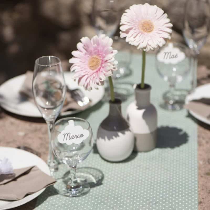 Vous hésitez sur une couleur? Misez sur de la jolie décoration de table pastel (rose poudré, bleu ciel, mauve, pêche…)!