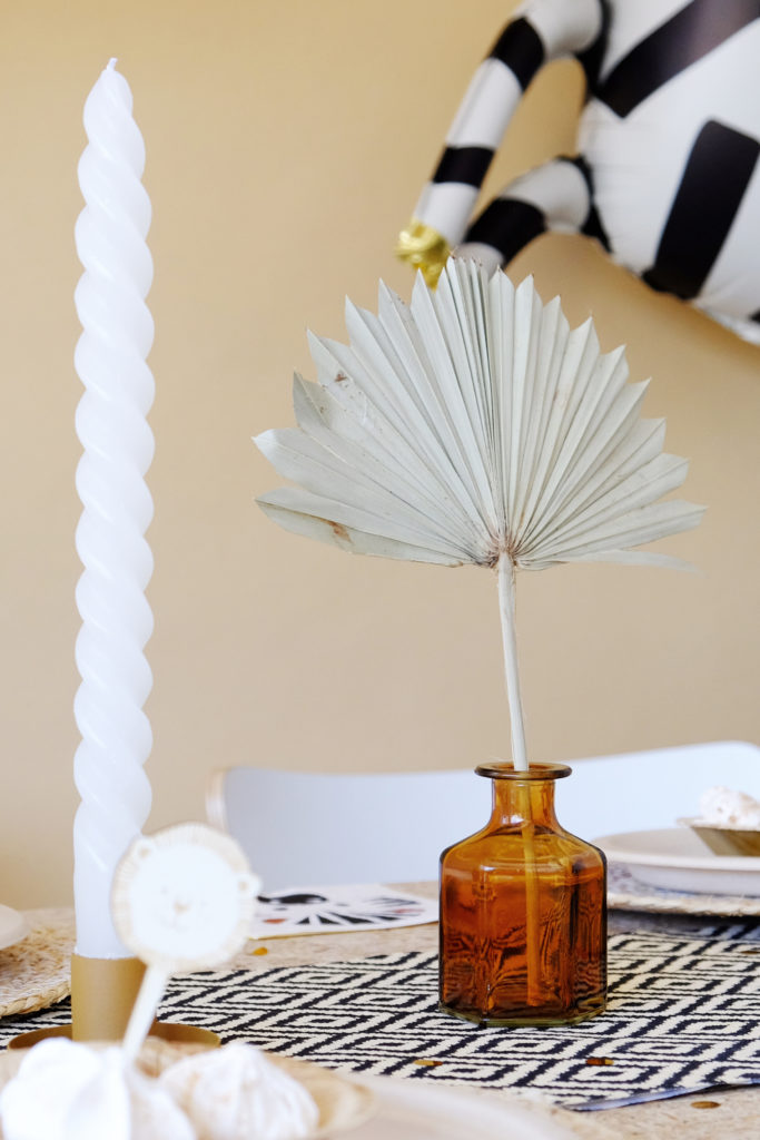 Une belle petite tige de feuille de palme naturelle y trouve facilement place.