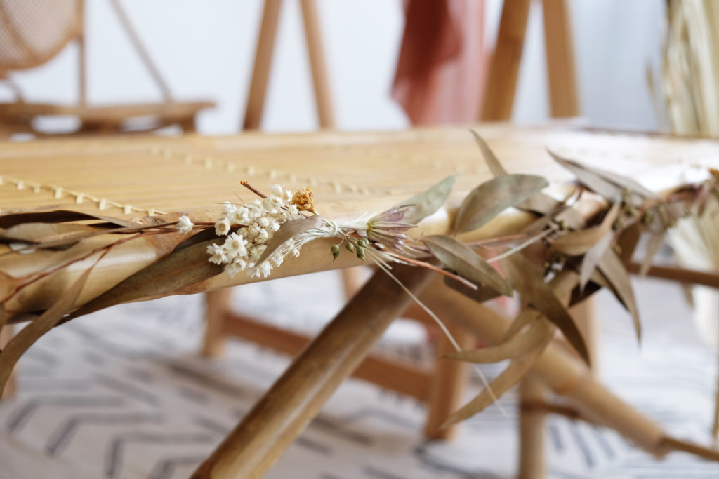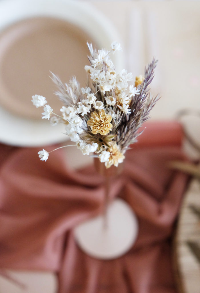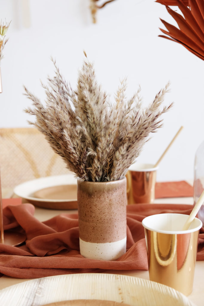 Nous y avons placé de belles petites herbes de pampa pour un rendu bohème à souhait !