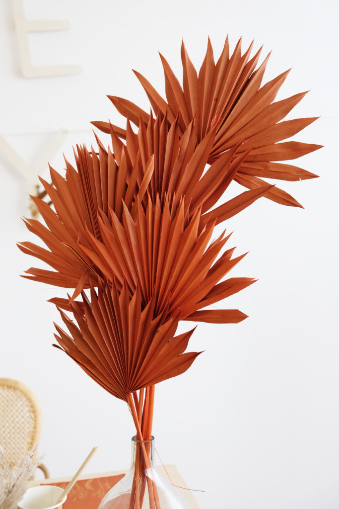 Ensuite, place à la dame-jeanne! Du haut de ses 24cm, elle accueille les feuilles de palme « palm sun » orange.