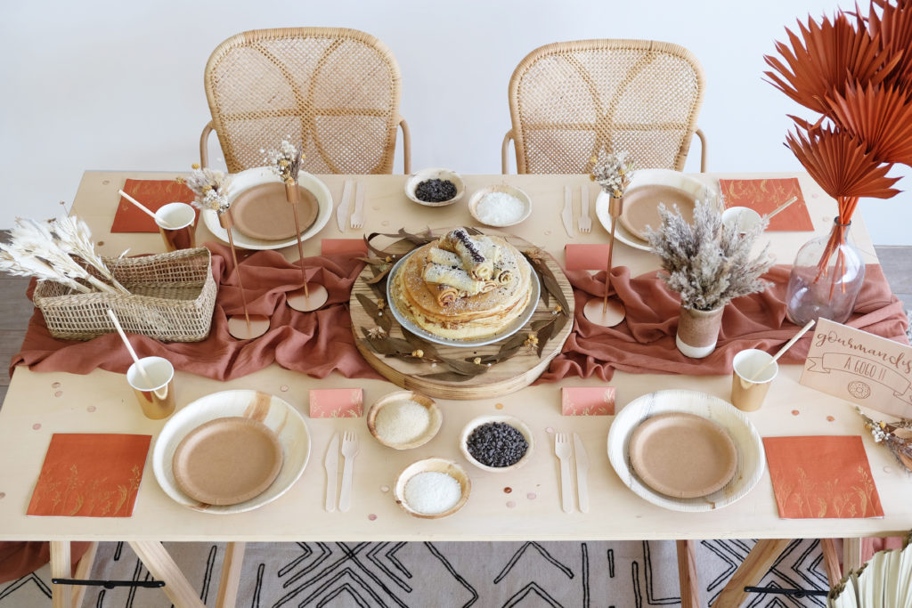 Nous avons prétexté la fête de la Chandeleur pour mettre en place une jolie décoration dans des tons chauds et gourmands.