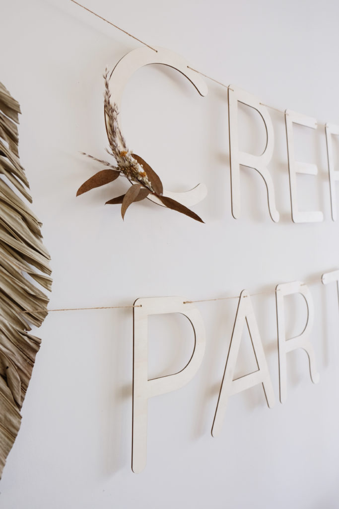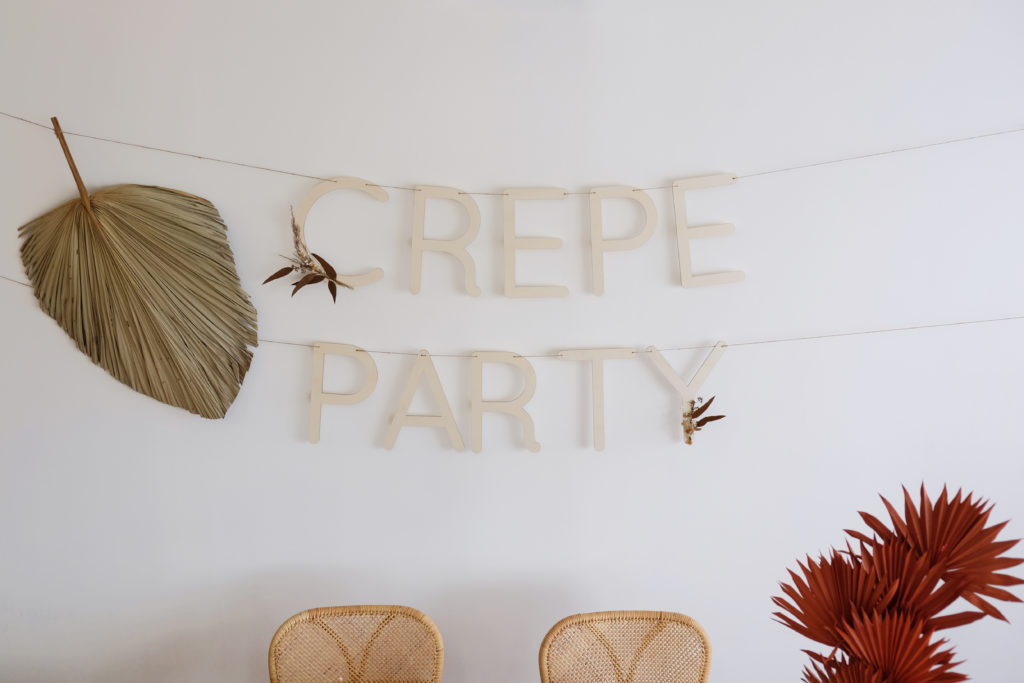 Nous avons formé une jolie guirlande à l’aide de nos grandes lettres en bois, pour y écrire « CREPE PARTY ».