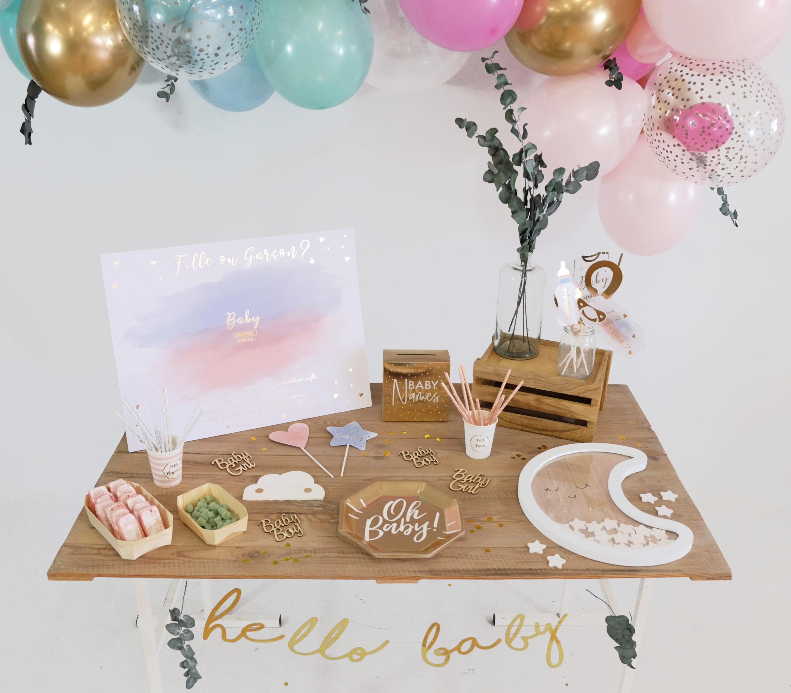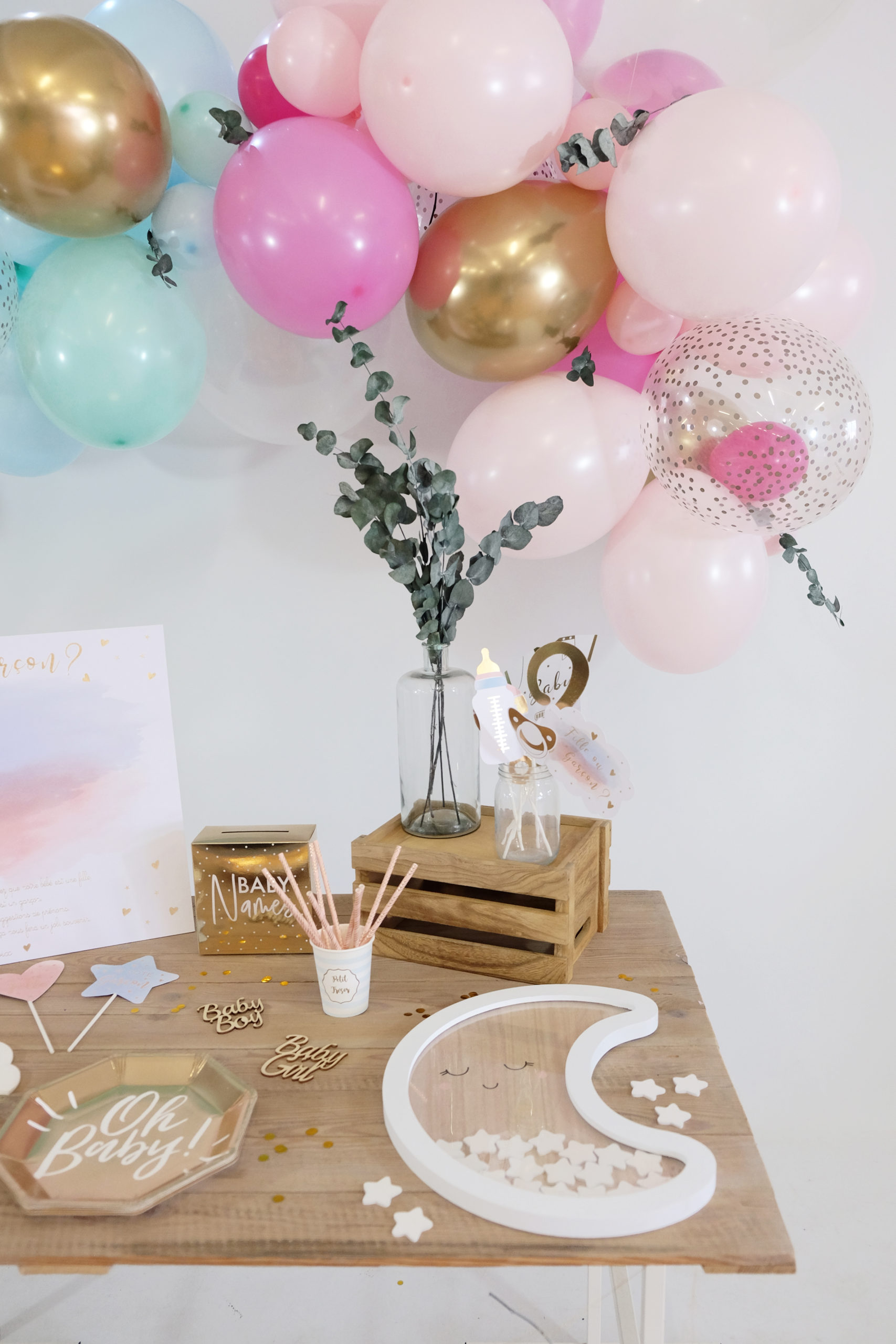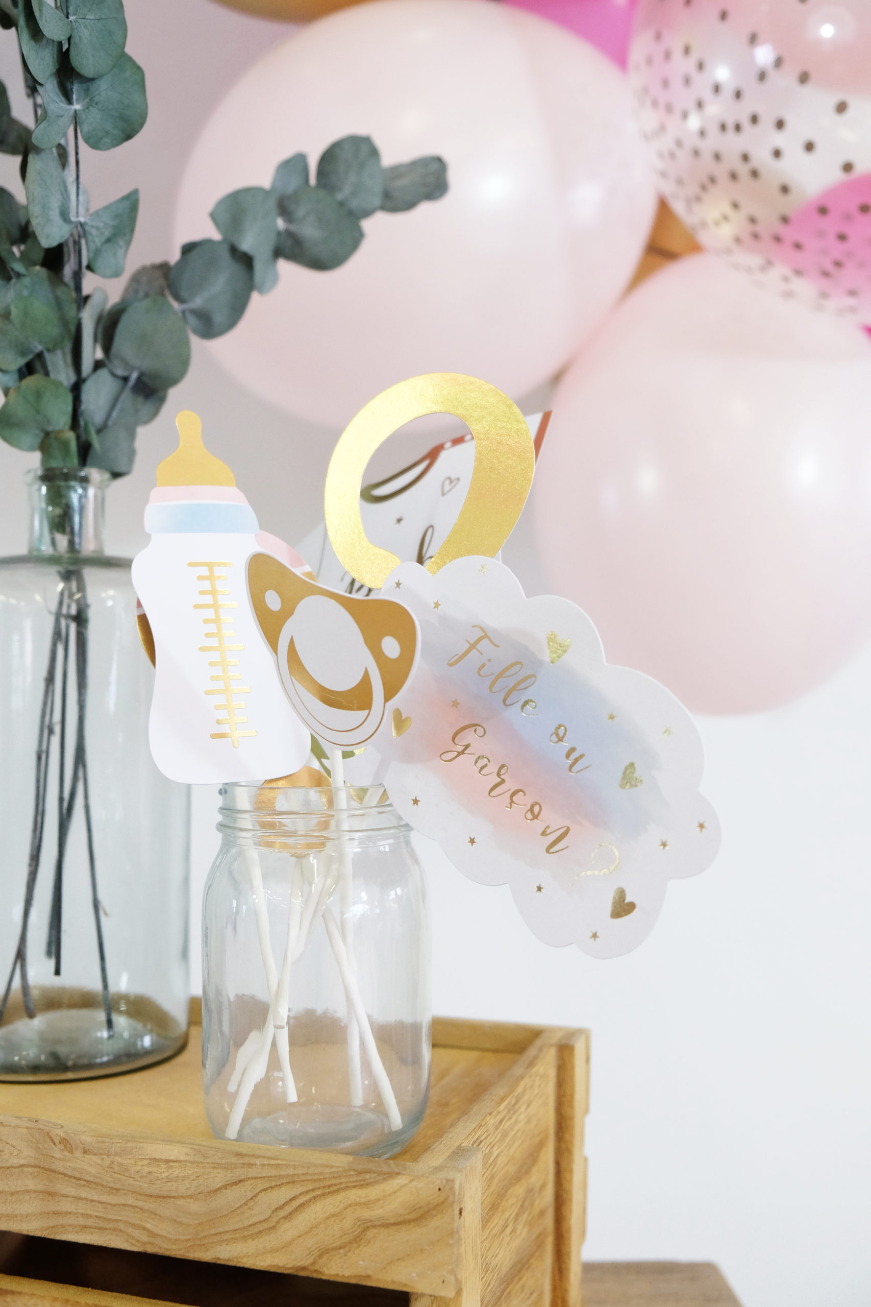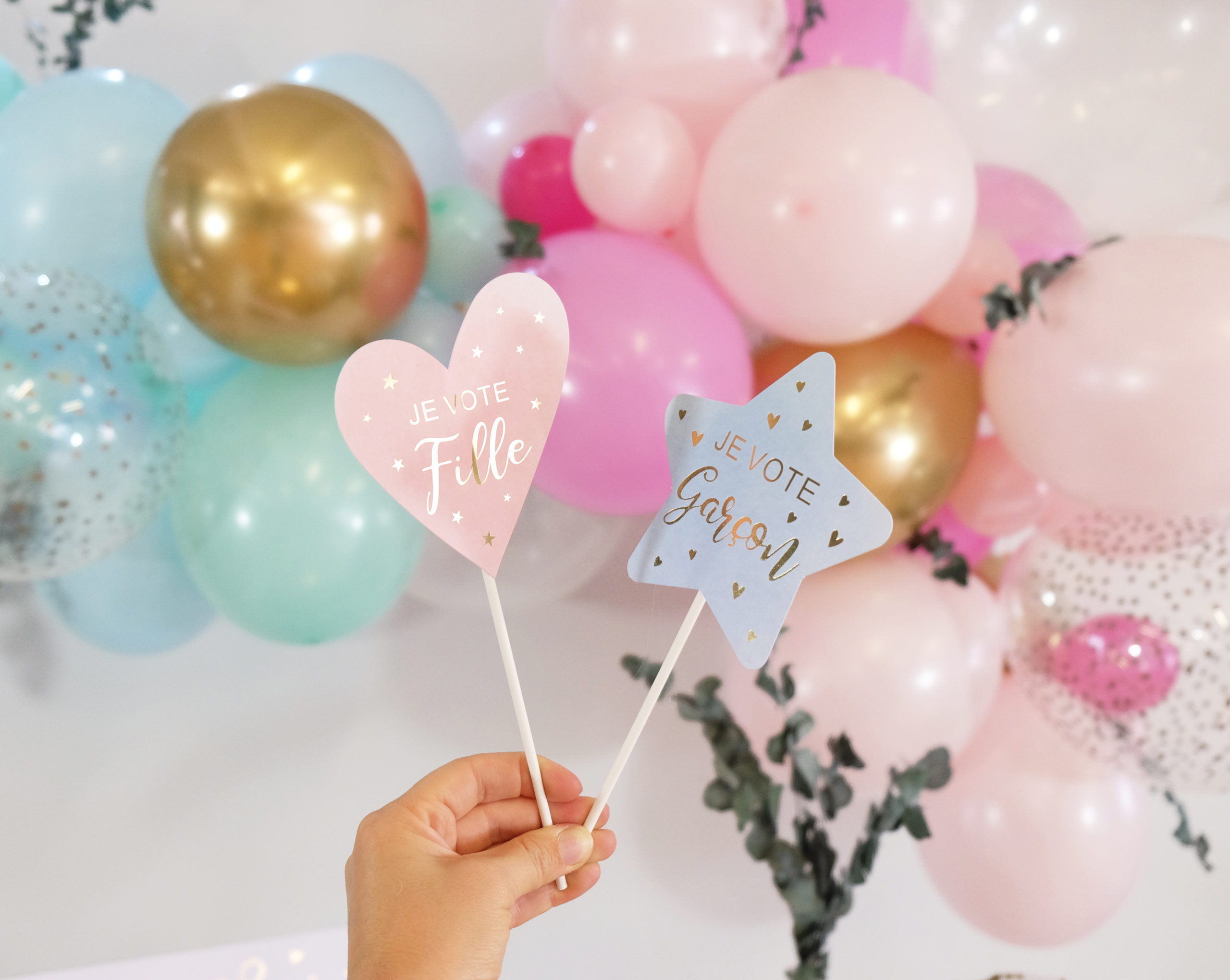 Une bien jolie déco pour vous permettre de réaliser une super fête et révéler le sexe de votre bébé à vos proches!