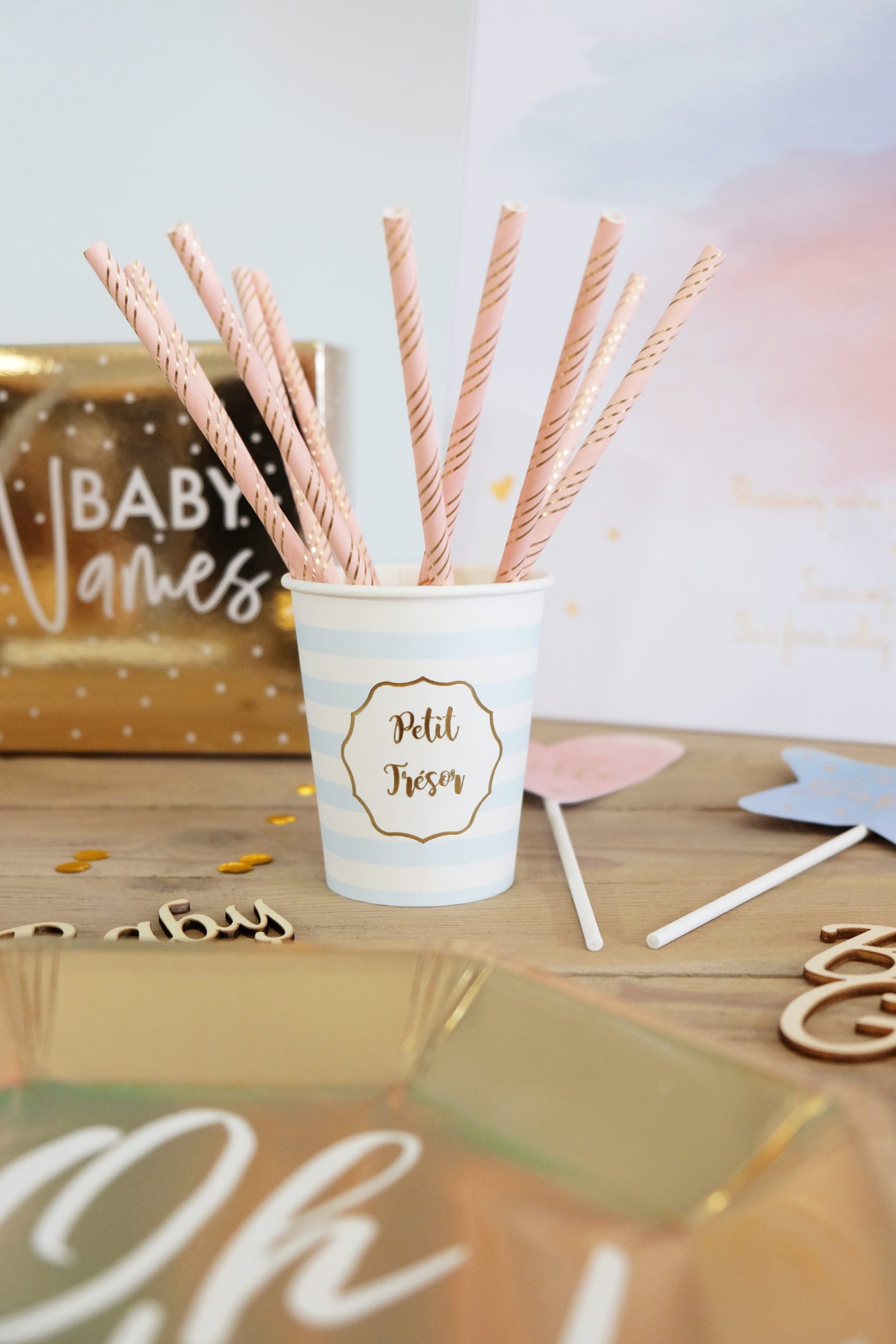 N’hésitez pas à mélanger gobelets roses et pailles bleues ou inversement! Vous pouvez tenter des associations improbables lors de cette fête, c’est ce qui est drôle et sympa!