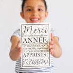 Nous commençons par positionner un joli chevalet en bois sur lequel a été placé un petit panneau en bois « Aidez-nous à boucler nos valises! ». Le chevalet est super pratique et très esthétique ! Il vous permet de positionner des petites choses personnalisées sans avoir à trouver des supports qui ne seraient pas prévus à cet effet.