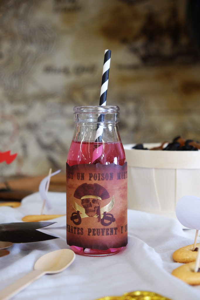 A l’intérieur, versez un jus, une potion magique ou du poison pour faire fuir les ennemis! Et glissez-y une belle paille rayures noires et blanches !