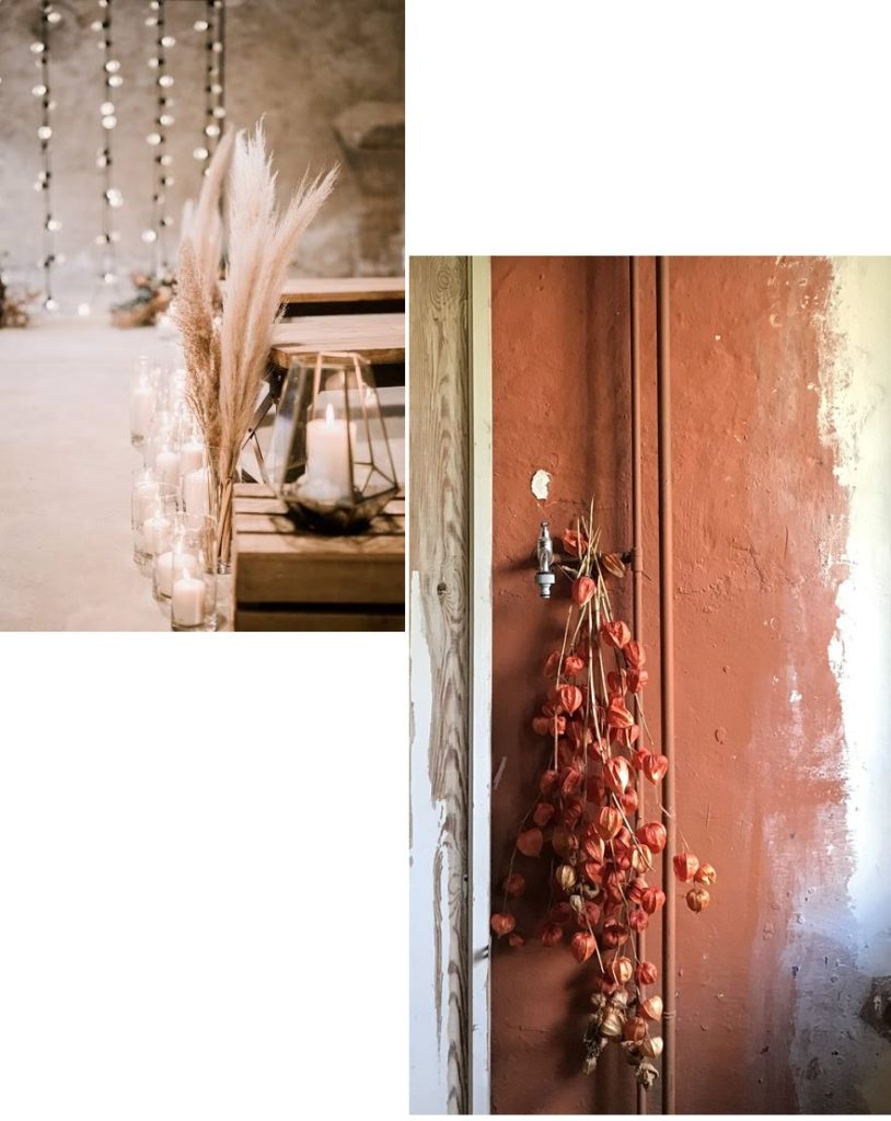 Les branches de pampa en veux-tu en voilà, des lanternes, des bougies, c’est à l’aide de ces petits accessoires de décoration que vous créerez une ambiance unique et qui vous ressemble.