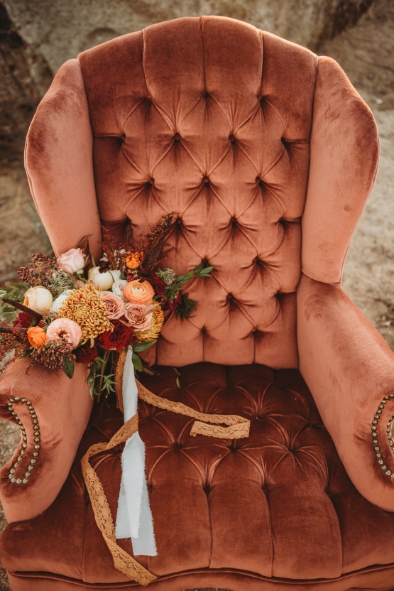 Pour terminer, comme vous le verrez lors de notre shooting qui interviendra sûrement courant avril 2020, nous allons beaucoup jouer sur les différences de matières. Le velours se marie parfaitement avec les pampas, les fleurs séchées, les couleurs dans les tons terracotta….