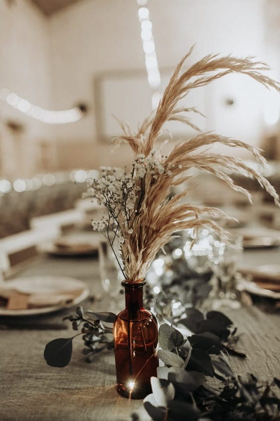 Les branches de pampa en veux-tu en voilà, des lanternes, des bougies, c’est à l’aide de ces petits accessoires de décoration que vous créerez une ambiance unique et qui vous ressemble.