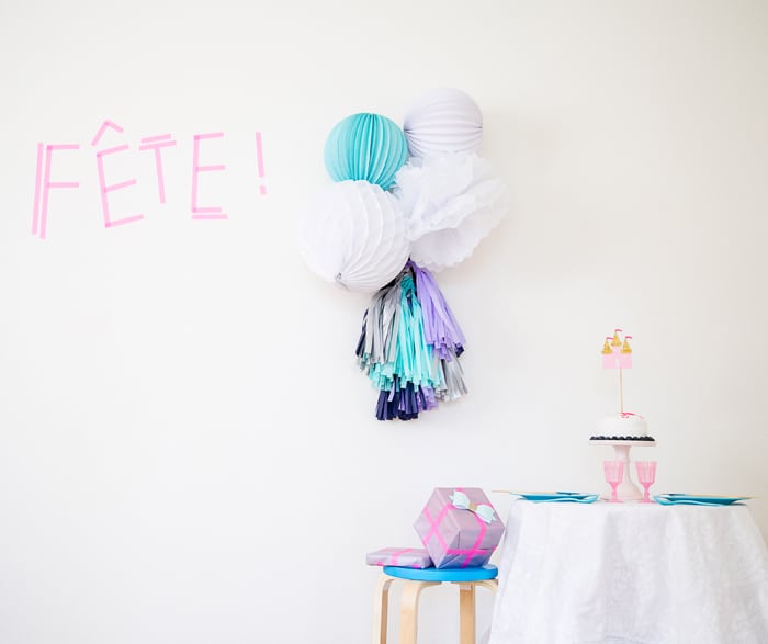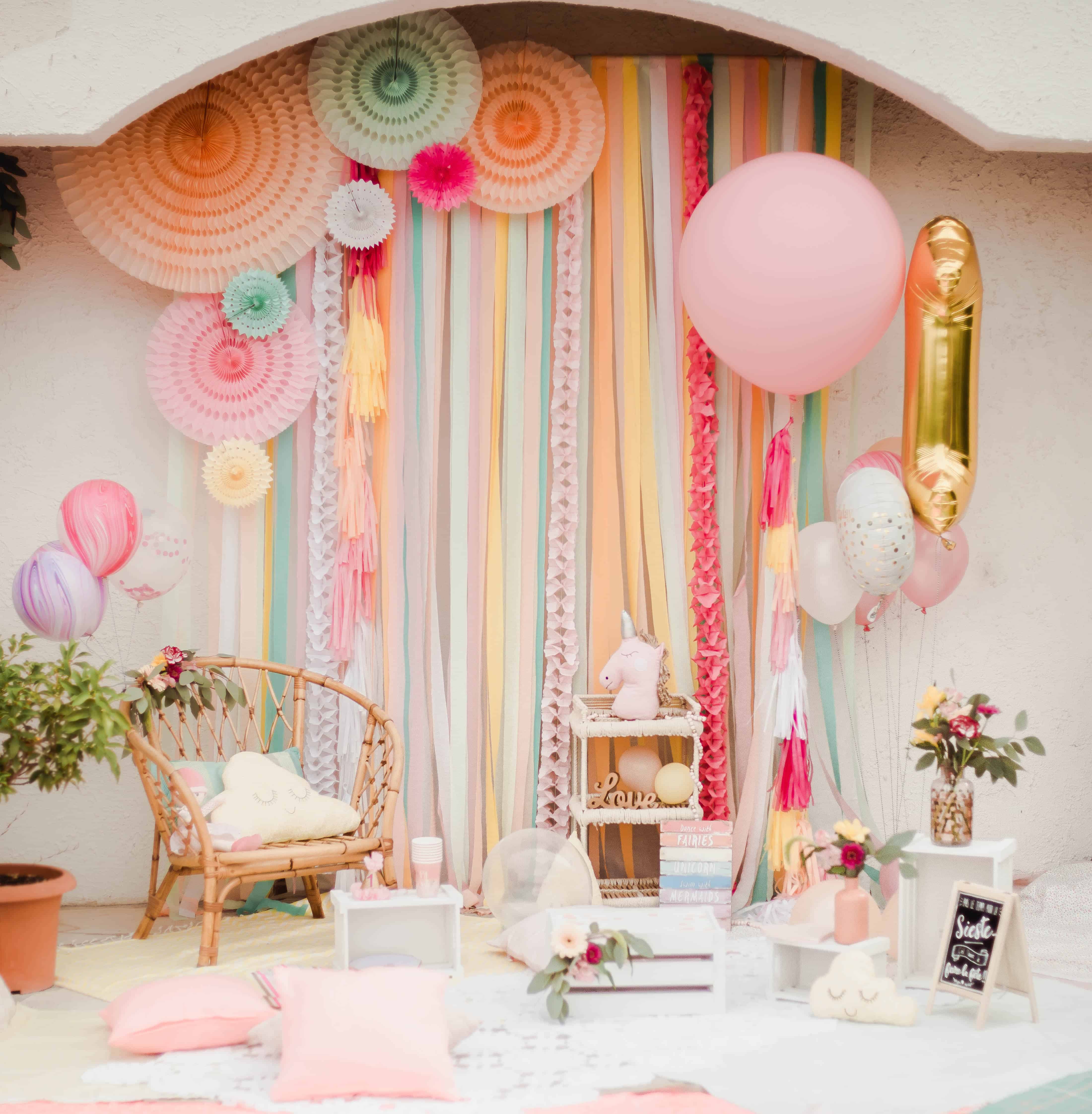 Suspendez guirlandes, rosaces, ballons pour que votre princesse et ses amis soient transportés au pays imaginaire!