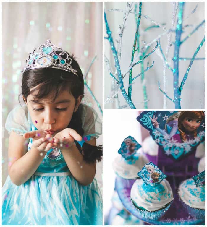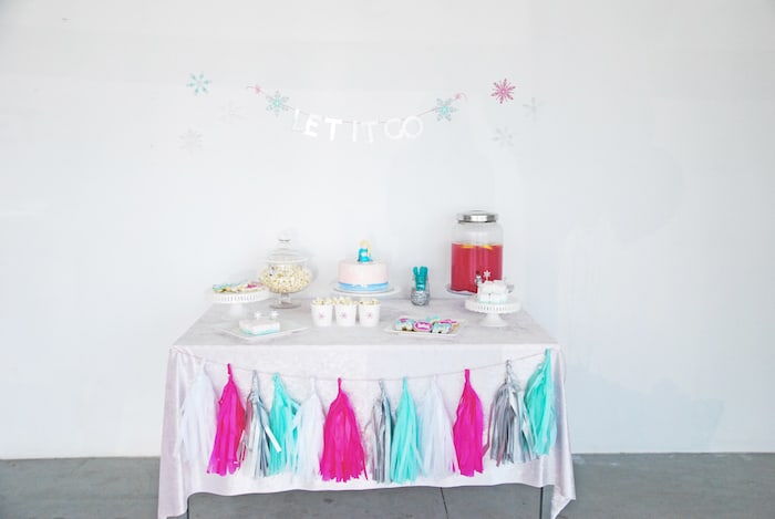Qui dit anniversaire sur le thème de la Reine des neiges, ne veut pas forcément dire « je prends les gobelets Reine des neiges, les assiettes Reine des neiges, les serviettes Reine des neiges »… _ NON_, vous pouvez tout à fait mettre quelques détails liés au dessin animé de la Reine des neiges et accessoiriser le reste de votre décoration dans les mêmes couleurs.