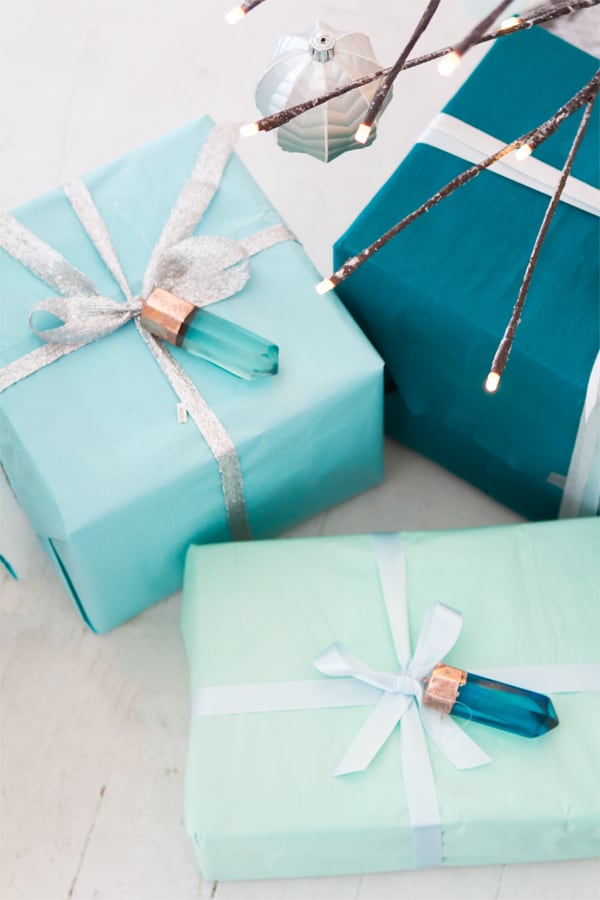 Les petits cadeaux trop choupi pour les invités ! Un sachet kraft, une paye à rayures émeraude revisitée et une petite carte personnalisée ! Le résultat est plutôt CA-NON !