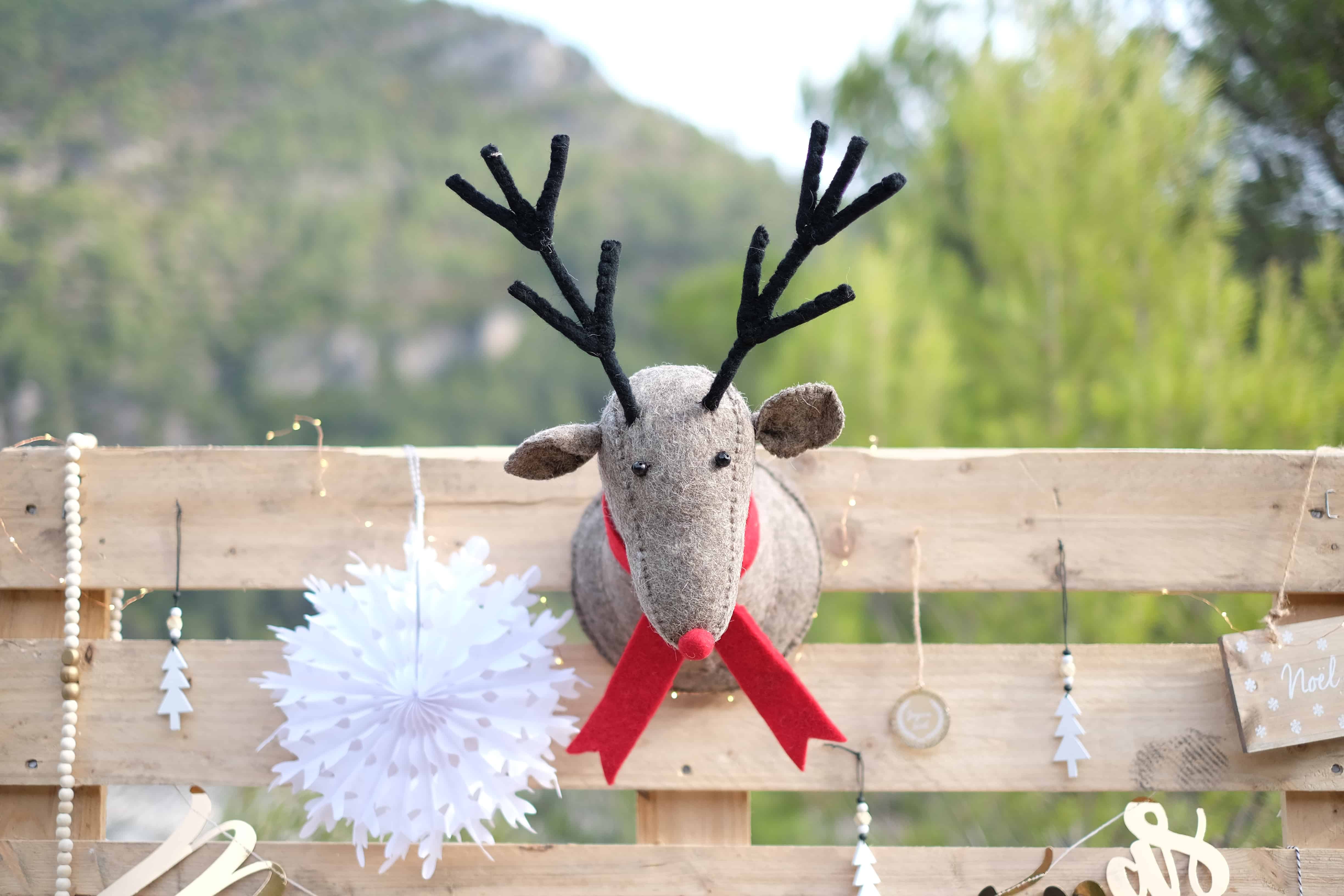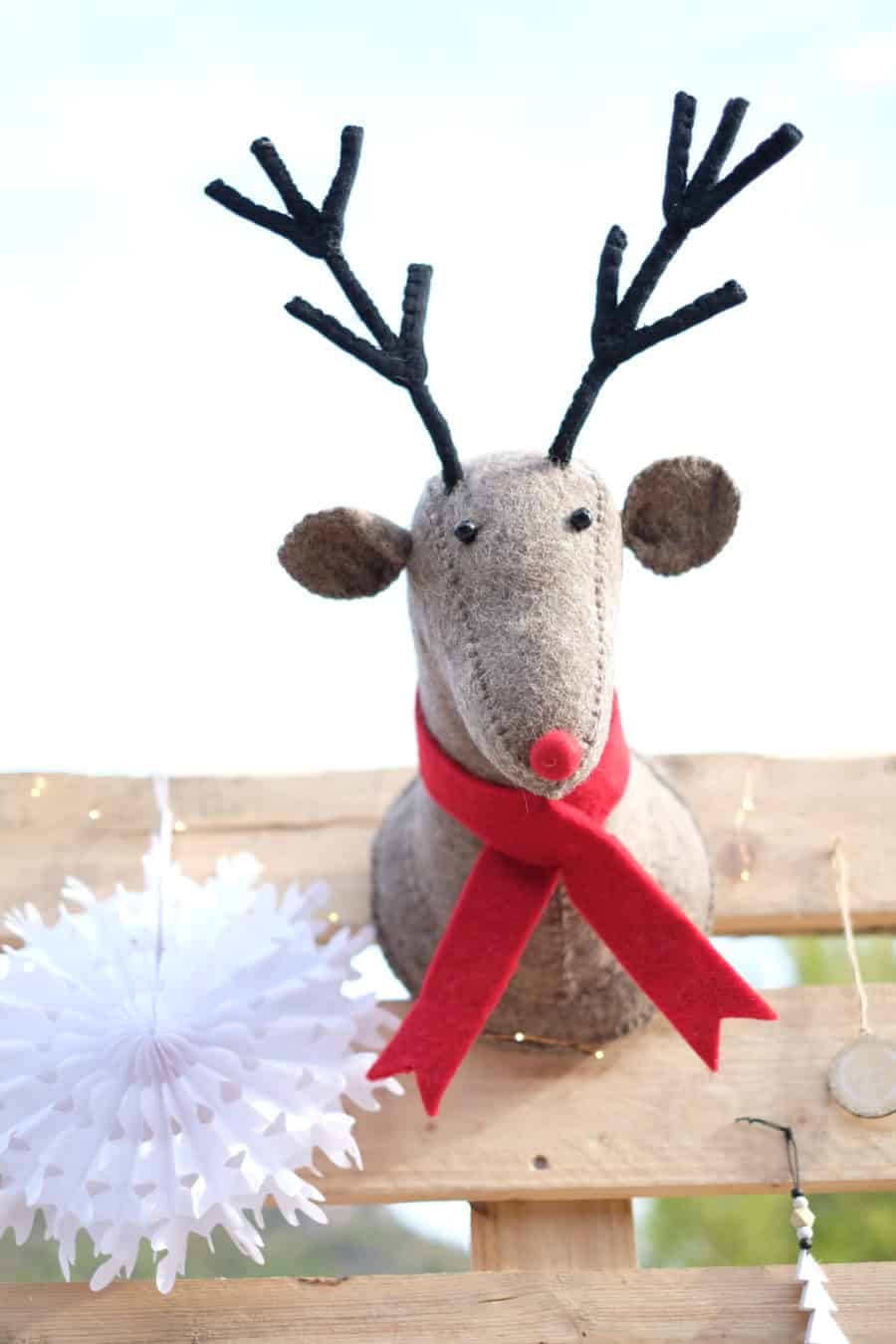 On ne pouvait pas faire un shooting d’hiver sans y inclure Rudolph ! Sa matière en feutrine, sa petite collerette et ses cornes…on fond LI-TTÉRALEMENT !