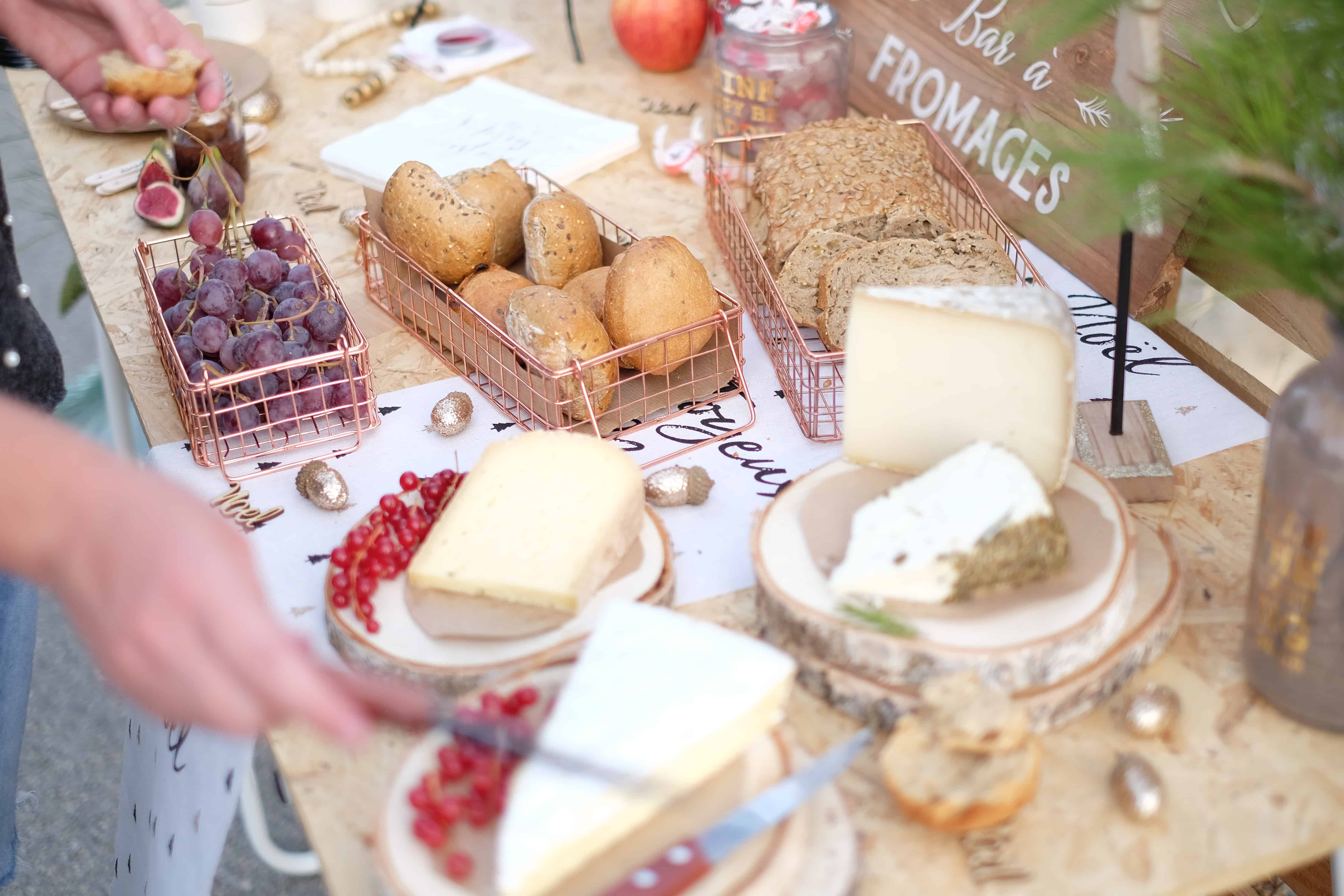 Pour la déco, nous avons misé sur un buffet de fromages ! Beaucoup plus simple pour tout le monde et effet convivial garanti !