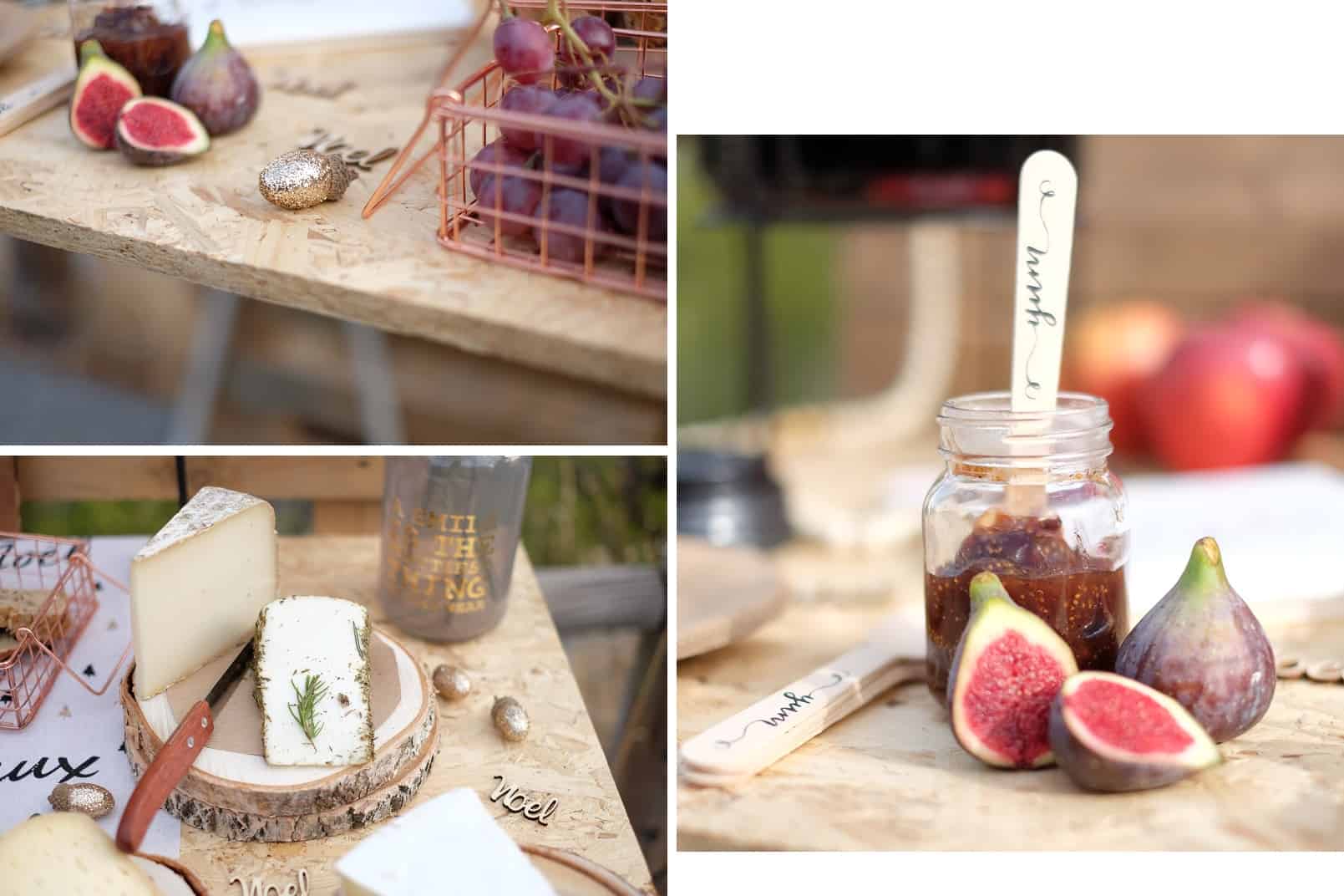 Accompagnez votre déco de fruits frais ! De jolies figues, des petites groseilles, ou encore de belles grappes de raisins ! Autant pour les yeux que pour le mélange fromage/fruits , c’est juste GÉNIAL !