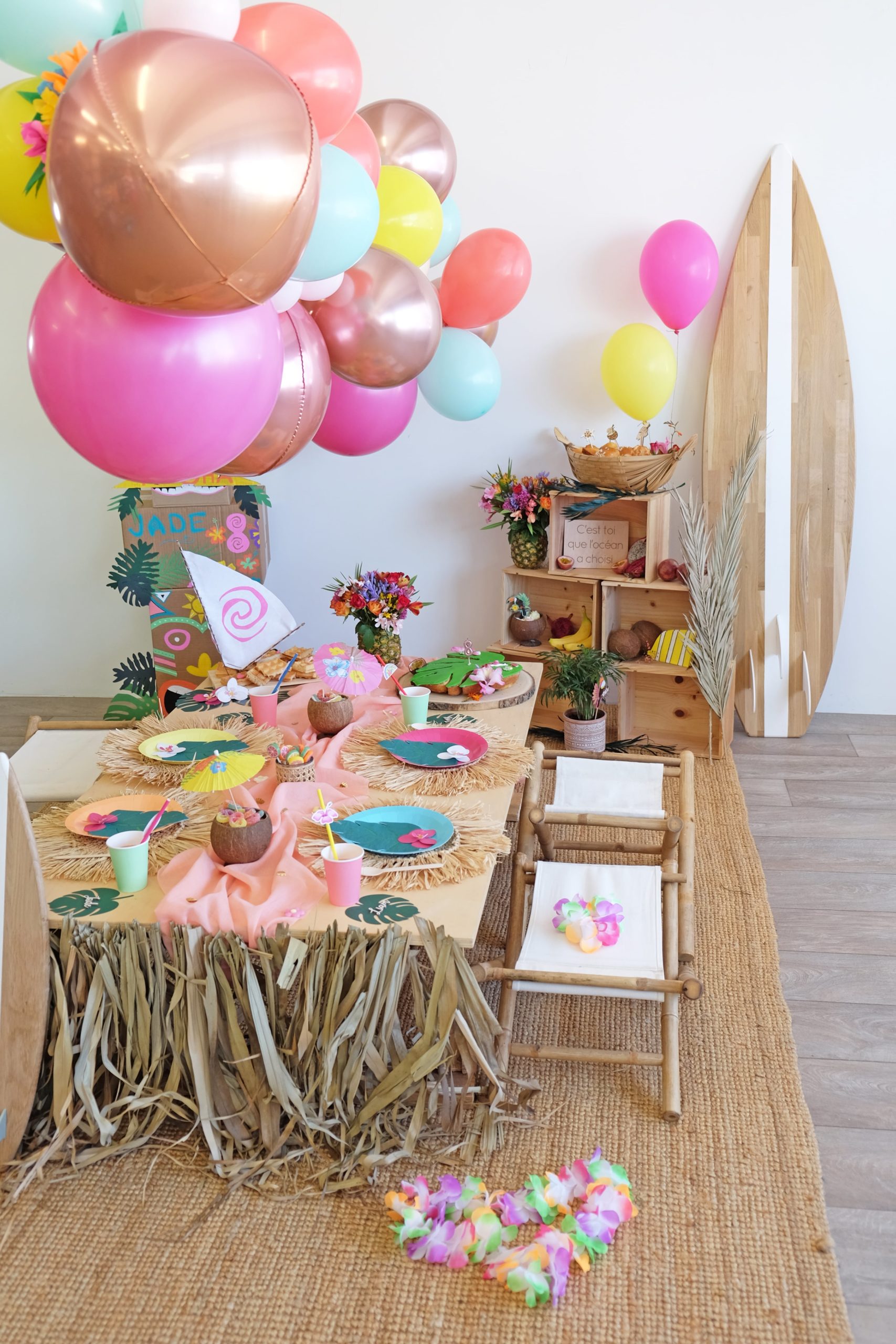 La décoration de la table est également très mixte ! Du rose et du bleu à gogo !