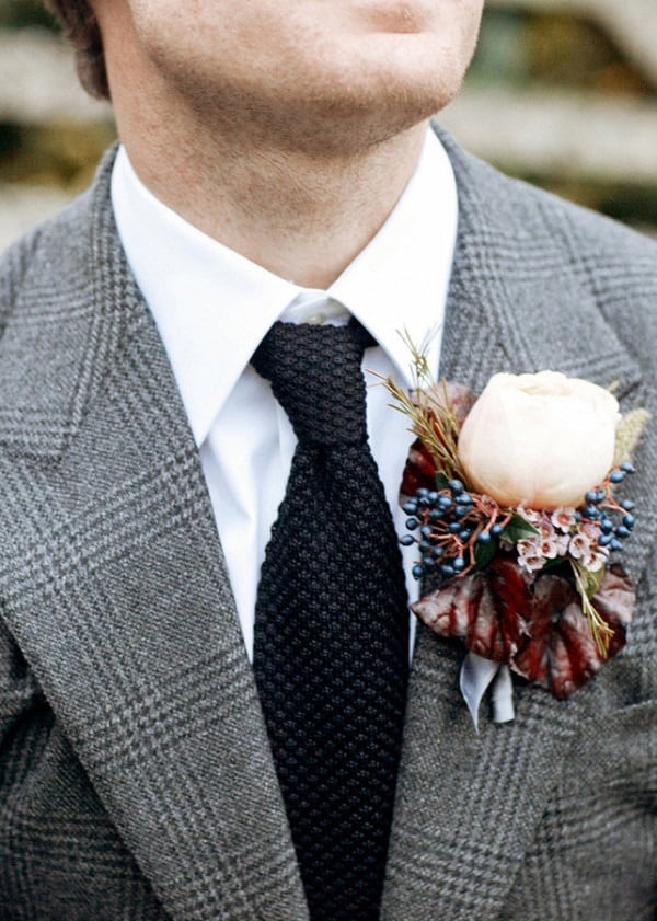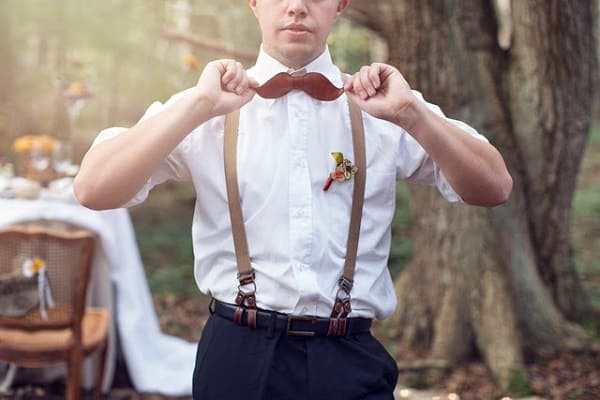 Monsieur comme Madame voit sa garde robe prendre un ton automnal. Costume bleu, blazer gris, veste en tweed brun,etc. tout est possible. Mais on pense quand même à assortir sa boutonnière au bouquet de madame. Et l’accessoire incontournable, le nœud papillon bois. Simple et chic, original, etc. l’esprit rustique n’est pas loin, parfait pour l’automne.