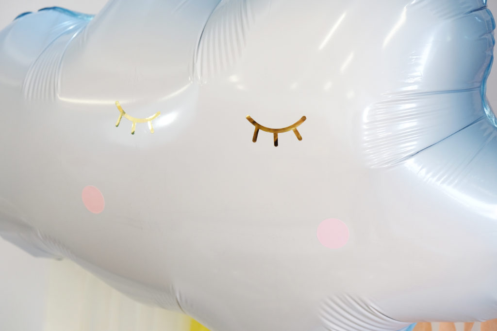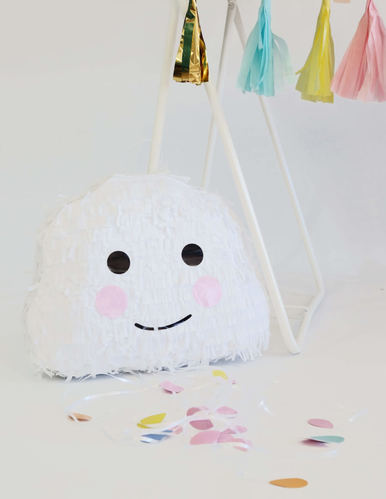 Pour le reste de l’espace de fête, nous avons posé là, au pied de la table, une jolie pinata en forme de nuage !