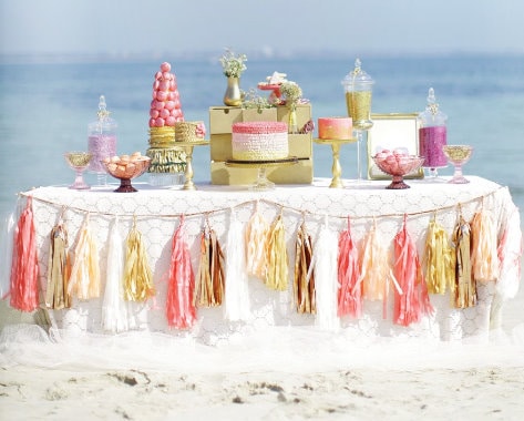 Créer un « ciel » de guirlande tassel, tendez en plusieurs à l’extérieur ou à l’intérieur au dessus de votre lieu de réception pour un effet remarquable.