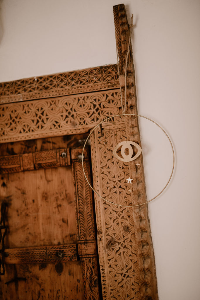 Autre idée de décoration de lieu; vous pouvez également utiliser un de nos cercles en métal doré et y suspendre au centre notre suspension en métal doré « œil et étoiles ». Une idée originale que vous pourrez complètement adapter en décoration d’intérieur.