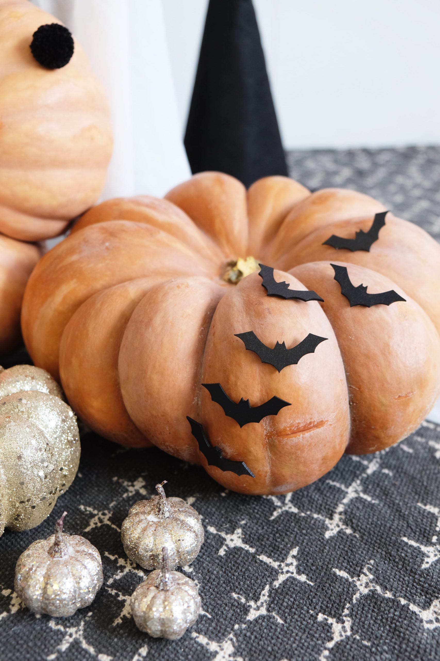 On adore nos citrouilles dorées pailletées. Elles sont idéales pour Halloween mais facilement réutilisables pour un thème plus automnal.
