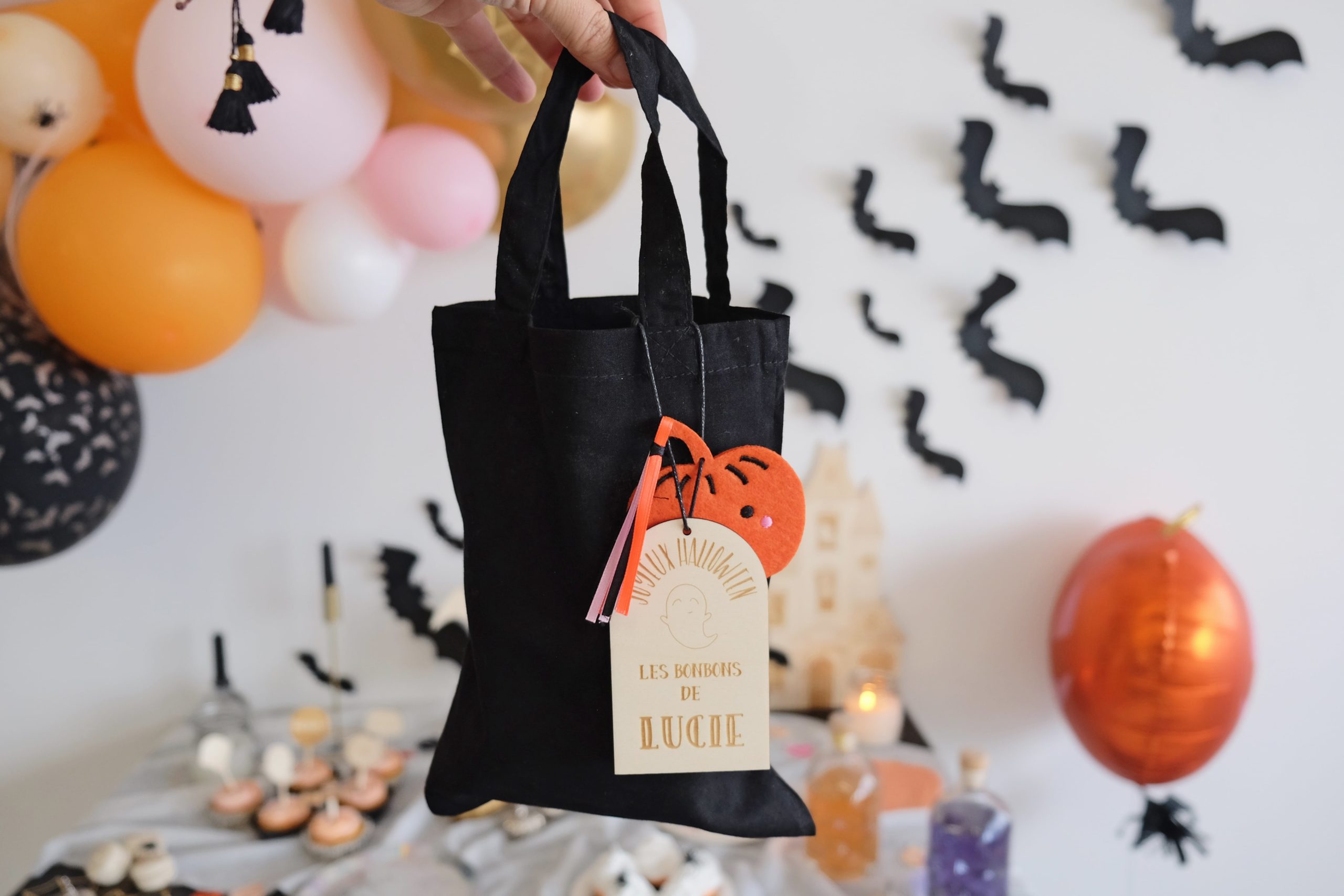 Le sac à bonbons Halloween. L’indispensable pour aller frapper aux portes et faire la réserve de « bonbecs » ! Et en plus il est personnalisable.