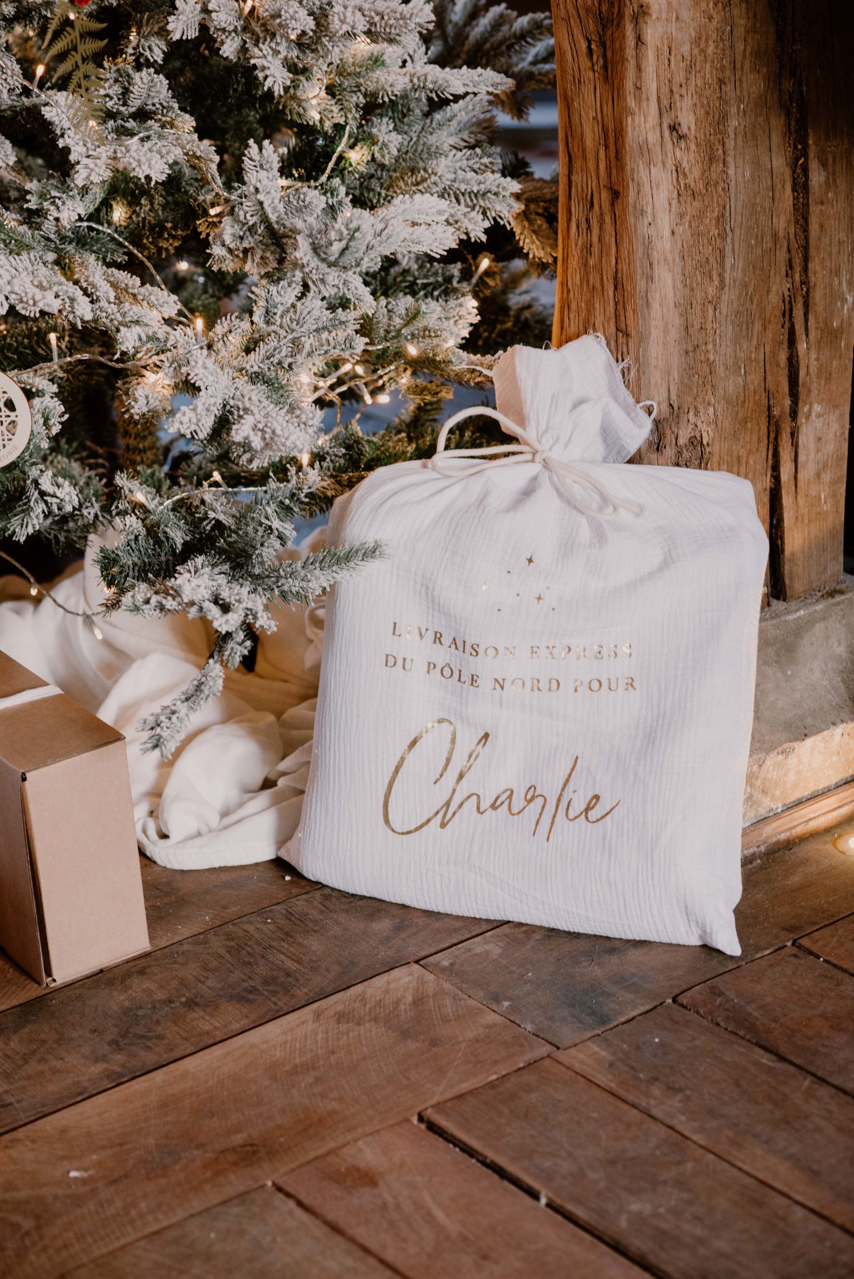 Sur la poutre en bois, un beau calendrier de l’avent pour compter les jours avant Noël. Une surprise pourra être placé dans les pochons et les enfants pourront découvrir les précieux trésors.