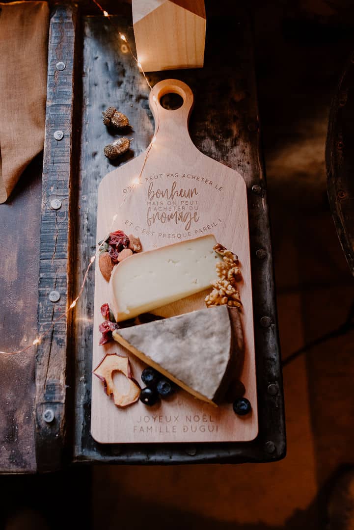 Une bonne idée à piquer ! La planche de fromage. Elle est gravée et personnalisable.