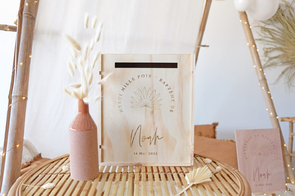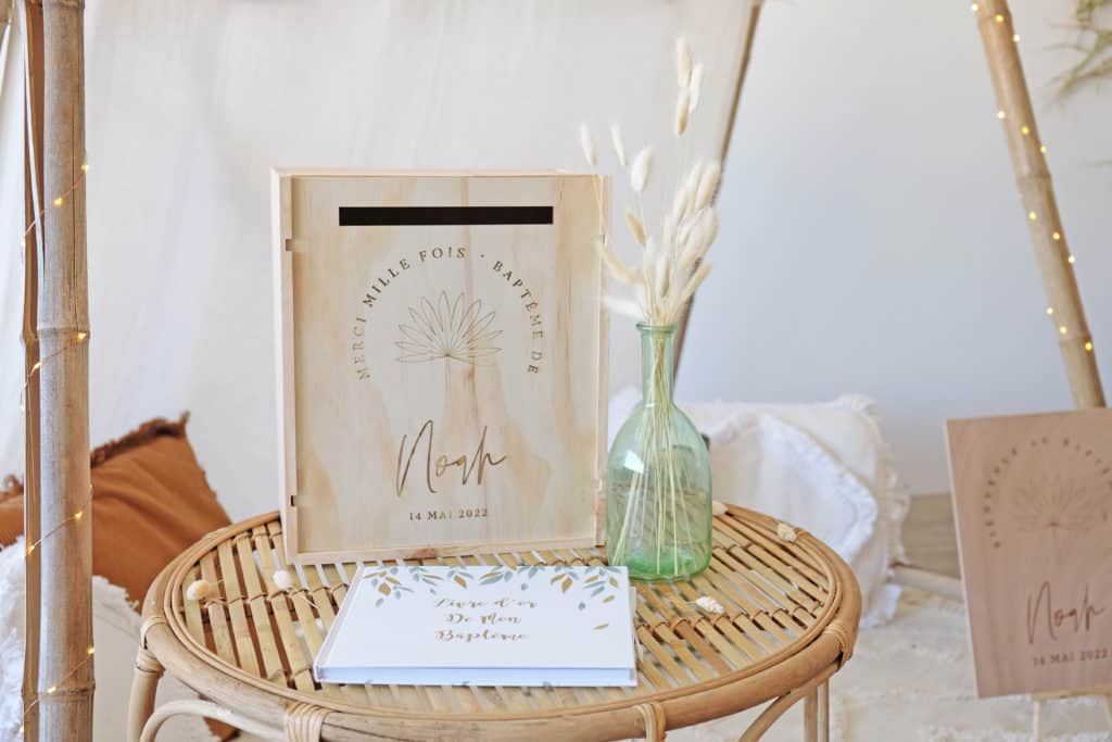 N’hésitez pas à personnaliser au maximum la table livre d’or avec une urne en bois personnalisable. Cela rendra votre événement unique et original.