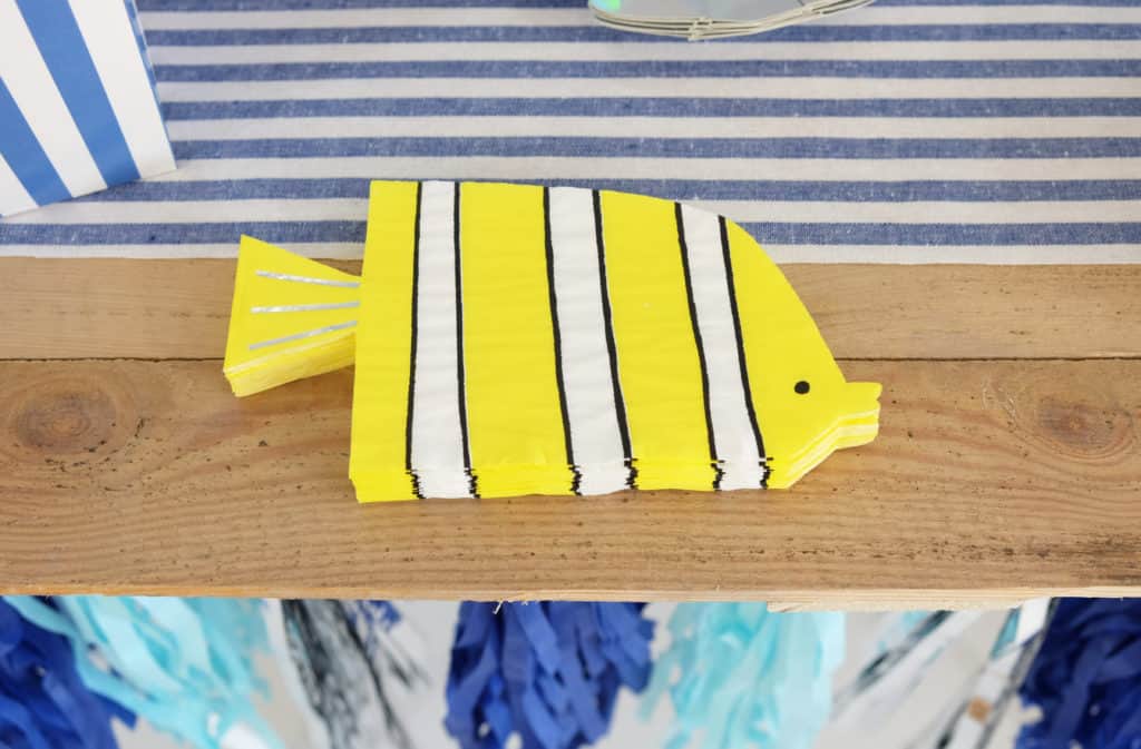 Qui dit que le jaune ne pouvait pas être de la partie? Les serviettes en forme de poisson jaune, on adore !