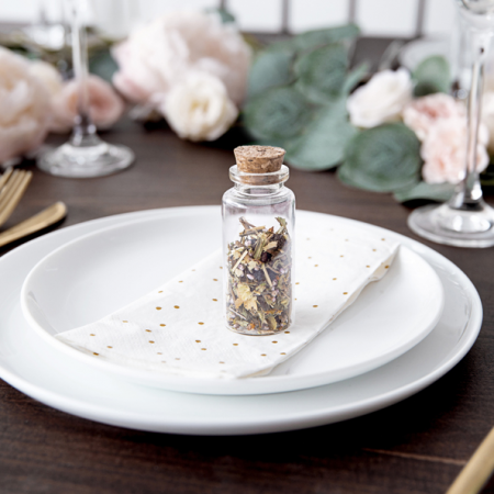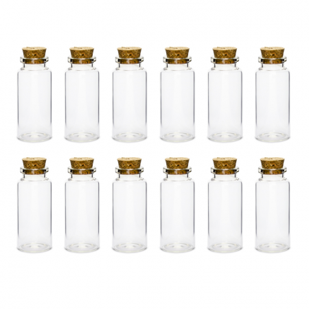 Ce lot est composé de 12 petites fioles en verre et bouchon de liège. Elles seront idéales pour une fête vintage et champêtre.