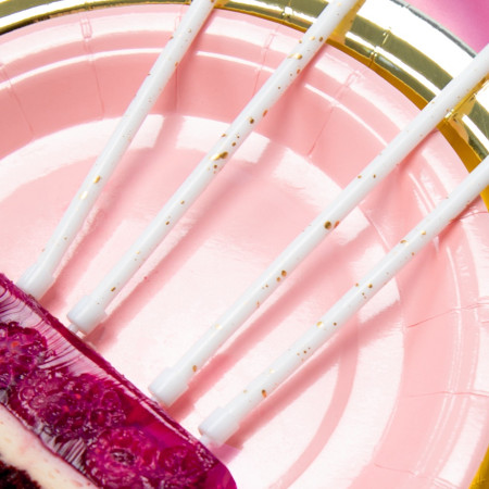 Apportez une touche lumineuse et festive à votre gâteau avec ce lot de 8 bougies blanc et doré.