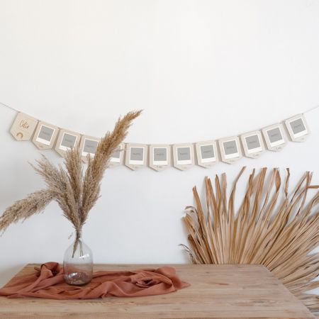 Cette guirlande est composée de 13 fanions en bois gravés: