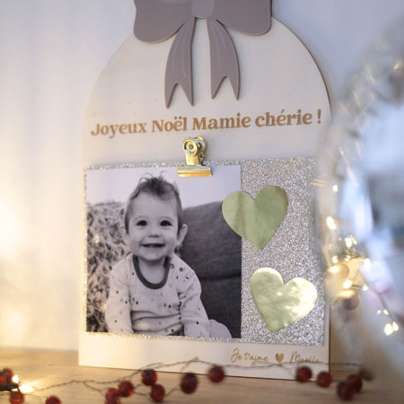 N'oubliez pas de sauvegarder votre personnalisation pour pouvoir l'ajouter au panierCapturer un souvenir et le mettre en valeur comme un petit trésor, c’est tout l’esprit de ce cadre photo imaginé pour la période des fêtes. Avec sa forme douce, son joli nœud en plexiglas et son pied en bois, il se pose facilement sur une cheminée, une étagère ou une table basse et deviendra vite un incontournable de votre décoration de Noël.