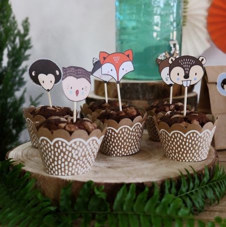 Ce lot de 6 contours et pics à gâteaux et cupcake est trop mignon pour un anniversaire sur le thème des animaux de la forêt.