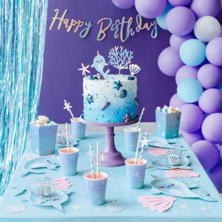 Ces magnifiques pics à gâteaux sont vendus par lot de 4 pièces : un narval, un coquillage, une étoile de mer et du corail.