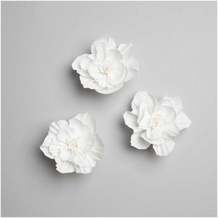 Sublimez vos événements avec ce lot de 3 fleurs en papier crépon blanc au style raffiné et aérien.