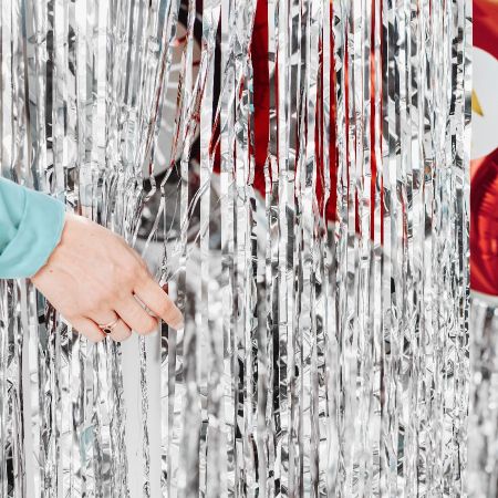 Ce grand rideau de lanières argentées est idéal pour une fête disco, un anniversaire de super-héros ou d'astronautes ou pour les fêtes de fin d'année !