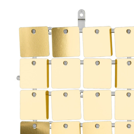 Nouveauté ! Ce panneau 30x30 cm en sequins brillants de couleur dorée est muni de crochets afin d'être associé à d'autres panneaux identiques pour créer une magnifique toile de fond de la longueur et de la hauteur de votre choix !
