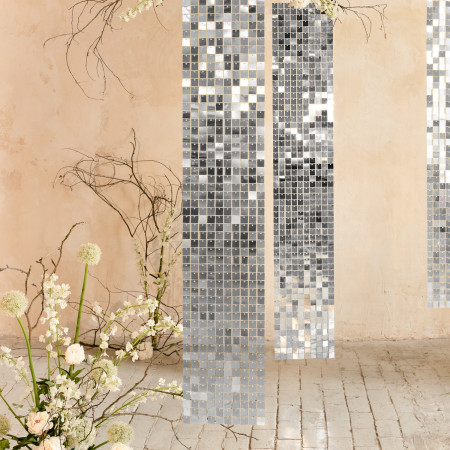 Nouveauté ! Ce panneau 30x30 cm en sequins brillants de couleur argentée est muni de crochets afin d'être associé à d'autres panneaux identiques pour créer une magnifique toile de fond de la longueur et de la hauteur de votre choix !