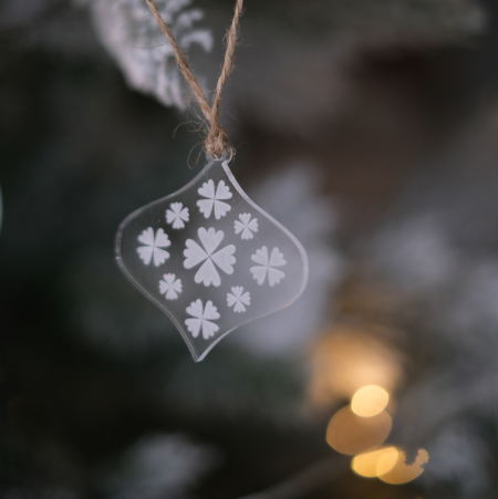Le lot "scandinave" est en plexiglas transparent et contient 5 boules de formes différentes décorées de motifs scandinaves.