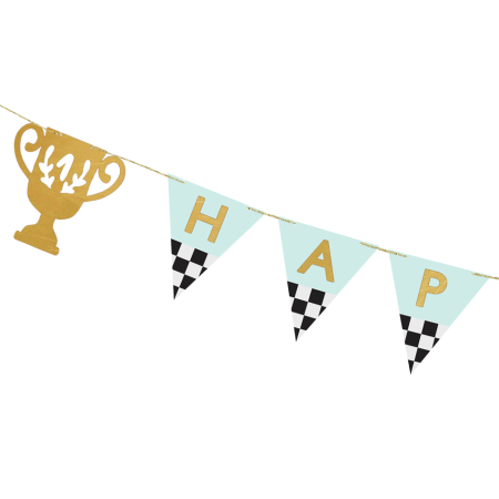 Cette guirlande bleu sera parfaite pour un anniversaire sur le thème des voitures de course vintage.