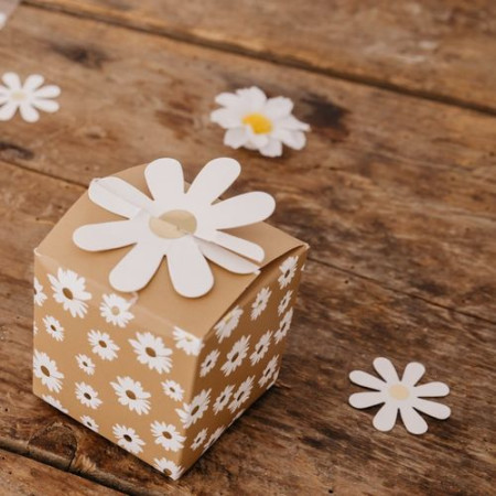 Offrez une touche délicate et raffinée à vos événements avec ce lot de 10 boîtes contenants Marguerites, confectionnées en papier cartonné de qualité. Leur design délicat mêle les teintes camel, blanc et or, apportant une note chaleureuse et élégante à votre décoration de table.