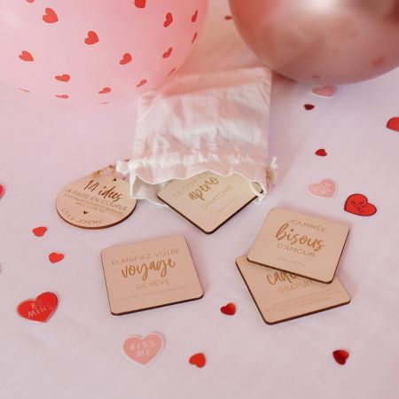 14 idées à faire en couple pour rajouter des étincelles dans votre vie <3 A vous de piocher chaque jour une jolie carte en bois et de découvrir le message !